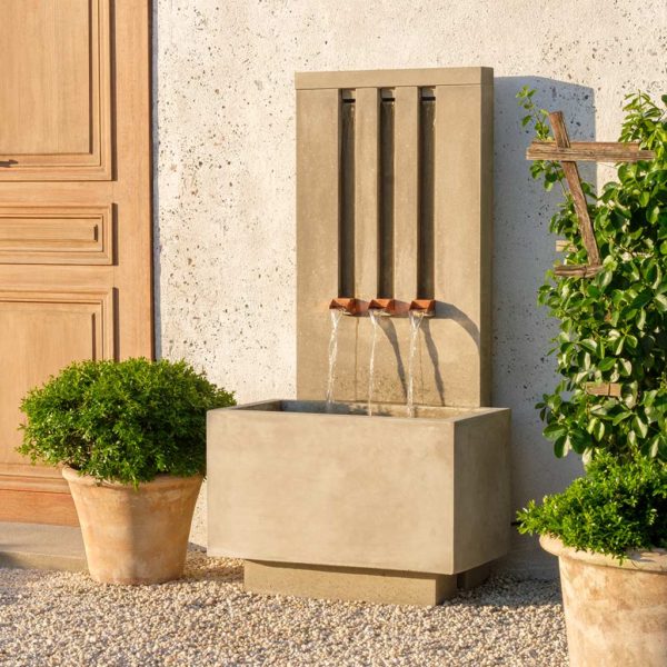 This tall wall fountain, the Mondrian, is will add a touch of modern and peaceful tranquility to your outdoor space. Details below: