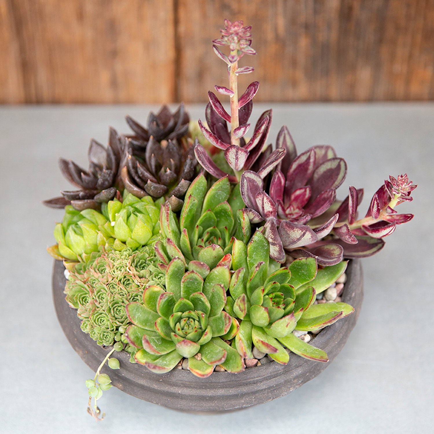 Our designers choose a variety of colorful, vibrant succulents that complement the season or occasion.